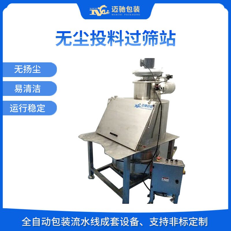 1.無塵投料站由投料平臺、卸料倉、除塵系統、振動篩等部件組成;