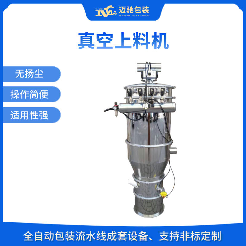 真空上料機由真空泵、真空料斗、過濾器(316L不銹鋼過濾器/鈦金屬過濾器)、壓縮空氣反吹裝置、料位自動控制裝置、不銹鋼吸料咀、輸送軟管等組成,整套系統設計合理、制造精美。