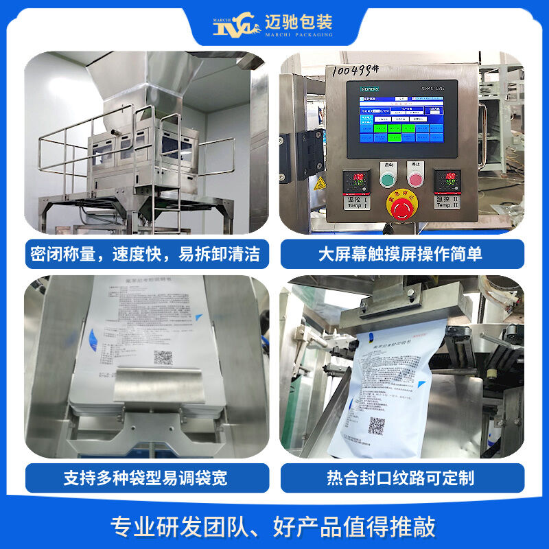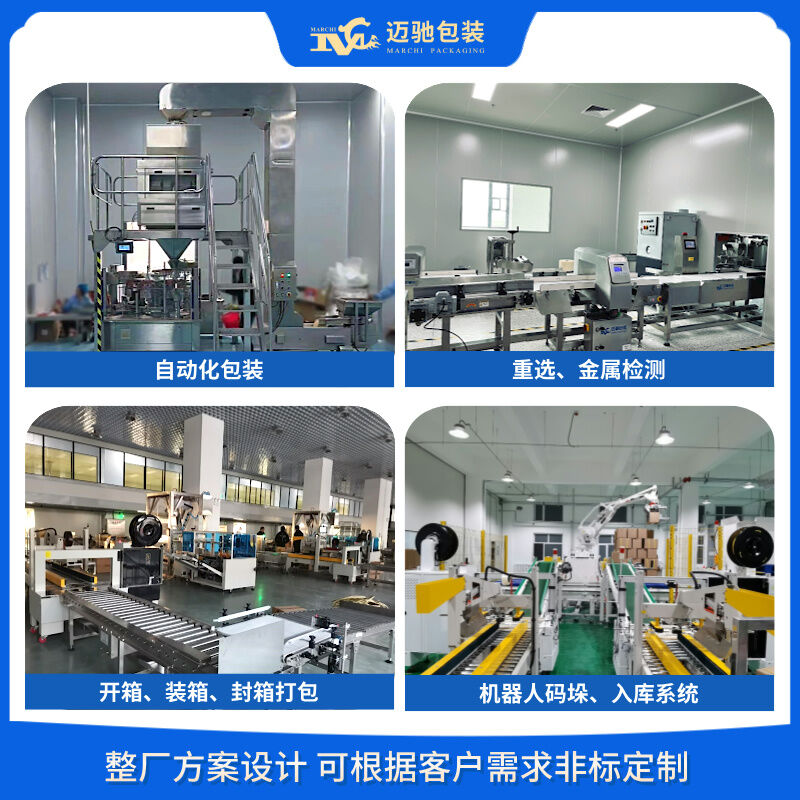 邁馳是一家專業生產顆粒全自動包裝機、給袋式自動包裝機、全自動包裝機械設備生產廠家,可根據客戶不同物料特性定制一對一方案,為您解決包裝精度的問題。一鍵調節袋寬,換產更方便。整廠方案設計,支持非標定制。26年包裝行業經驗,助力生產企業穩定生產,提高產能。