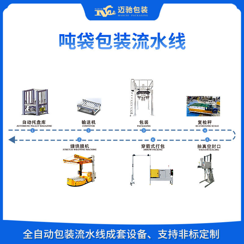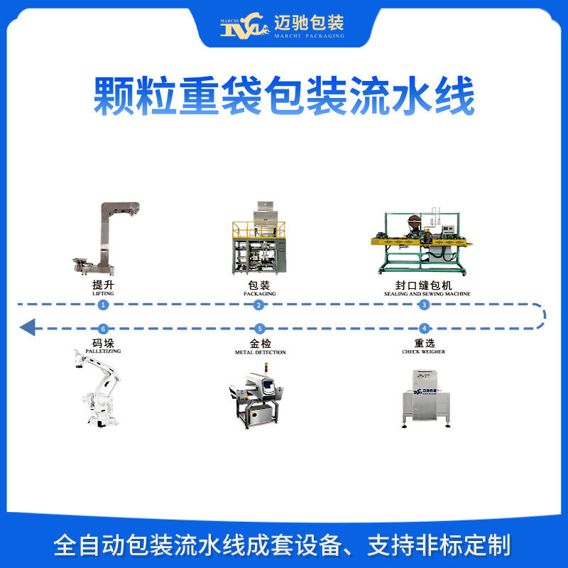 邁馳,是一家專業生產全自動5-25kg底充式包裝流水線的生產廠家,無揚塵、高精度,可根據物料不同特性定制包裝流水線設備,一對一定制化服務,26年包裝行業經驗助力生產企業將本增效,提高產能。